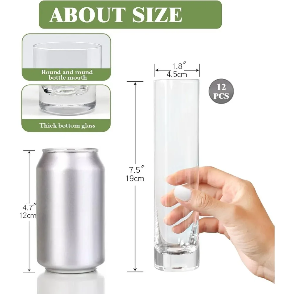 - 【Cylinder Vases Set】: You get 12 pc glass vases, cylinde shape with minimalism aesthetic design,make flower arrangement fun and easy. The surface look very textured and bright.Size:4.5*19cm/1.8*7.5 inch(Diameter*Height)